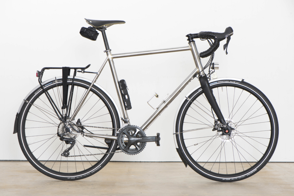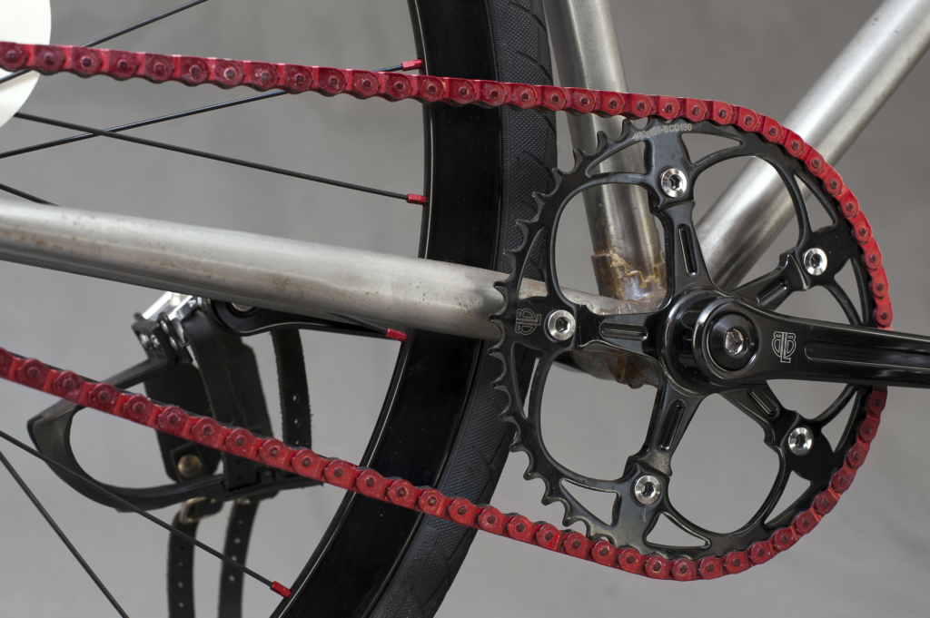 Rahmen Gemufft Reynolds 631 — gabel Gemufft Reynolds 631 — laufrader Nabe Chris King Singlespeed, Felge Mavic Open Sport — bereifung Schwalbe Durano — kurbel Schlumpf Speed Drive — pedal Allcity Wallner — antrieb Schlumpf Advanced Belt Drive — schaltung Schlumpf 2-Speed — steuerlager Chris King — vorbau Ritchey Classic — lenker Ritchey Classic — griffe Ritchey — sattelstutze Ritchey Classic — sattel Selle San Marco Concor — bremse Tektro — bremshebel Paul Components Love Lever — schutzbleche Curana —